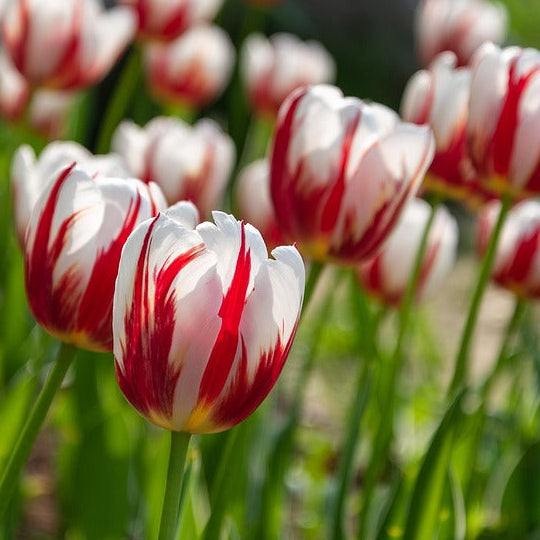 Göz alıcı renk kontrastı ile öne çıkan kırmızı-beyaz çift renkli lale soğanları, ilkbaharda bahçenize ve...